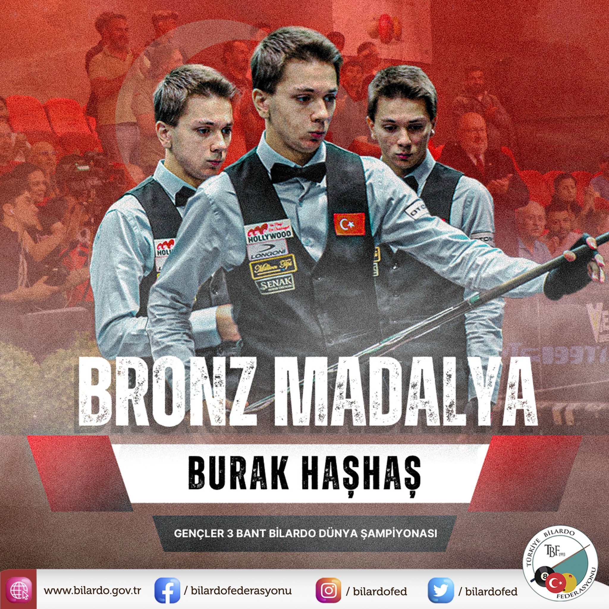 burak haşhaş dünya şampiyonu oldu. 3 bant bilardo gençler dünya şampiyonası finalinde dimitris seleventas'ı 35-10 mağlup eden sporcumuz, organizasyonu zirvede tamamladı.