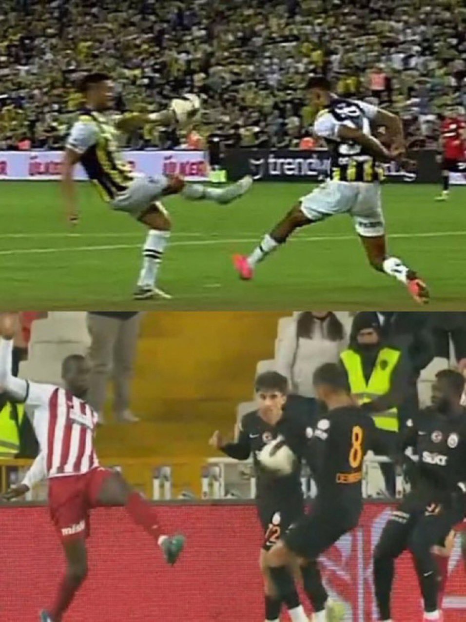 2023-2024 sezonunda sarı lacivertli takımın lehine kralını gördüğümüz şey. aynı pozisyonda sarı lacivertli formanın lehine penaltı var sarı kırmızılı formanın lehine yok. aynı pozisyonda sarı lacivertli takımın aleyhine penaltı yok sarı kırmızı takımın aleyhine penaltı var. buna rağmen farkı açtıramadılar biricik fb'lerine. 1 maçlık puan farkıyla takibi sürdürüyoruz.