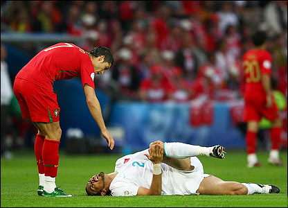 kişisel olarak futbolculara bakış açımda en önemli iki özellik vardır; birincisi ayakları kullanma(şut bazında), ikincisi ise akıl almaz çalımlar. bu iki özellik olarak da ronaldo gene en iyi. sağ sol farketmeden ölümcül şutlar çeken bir adama taparım ben arkadaş! yıllar yılı kalecilik yaptığım için şutlar karşısında kalecilerin yapacağı hareketleri az çok tahmin edebilirim. bu şut mevzusunda messi zekasını kullanırken ronaldo hem zeka hem ayaklarını kullanmakta. ronaldo topa öyle bir vurur ki kalecinin yapacağı hiçbir şey olmaz. messi için de böyle bir durum söz konusu ancak ronaldo topun gidişatını etkileyecek şekilde fizik kurallarını bozarak vurur. top önce düz gider sonra yön alır, önce yukarı sonra aşağı ivme alır falan. bu şutlara kalecinin yapacağı bir şey olmaz. çalım konusuna girmek istemiyorum.