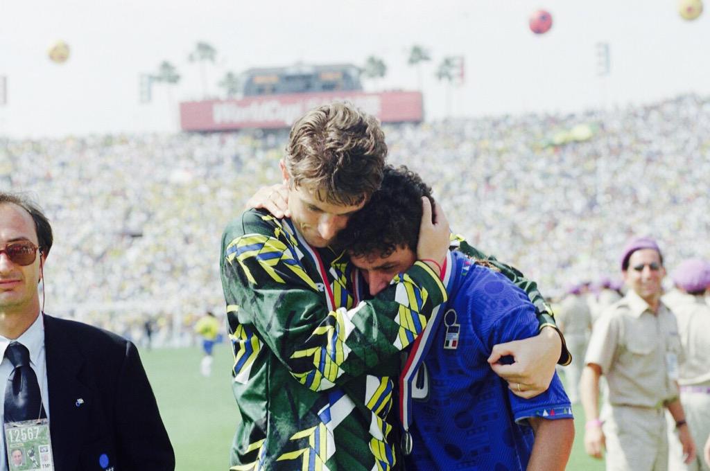 582 94 dünya kupası finalinde penaltıyı kaçıran baggio'yu teselli eden, kupa sevincini bir kenara iten aslan parçası. abimiz, kardeşimiz. https://pbs.twimg.com/...E0WYAAnQB9.jpg:large