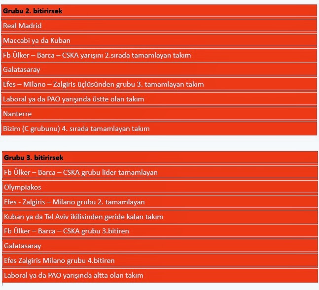 - a grubundan gelecek diğer bi rakibimizde 3. olacak takım yani yine fb ülker-barça ve cska üçlüsünden en geride kalan takım...