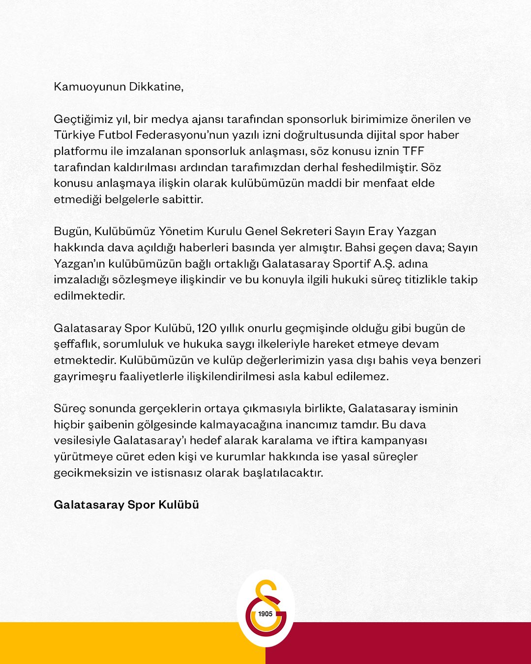 galatasaray spor kulübü, her sezon olduğu gibi mücadelesine, saha içinde, sonuna kadar devam edecektir.