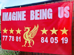 liverpool'un 6 şampiyonlar ligi şampiyonluğuna gönderme yaparak hazırladıkları pankartları.