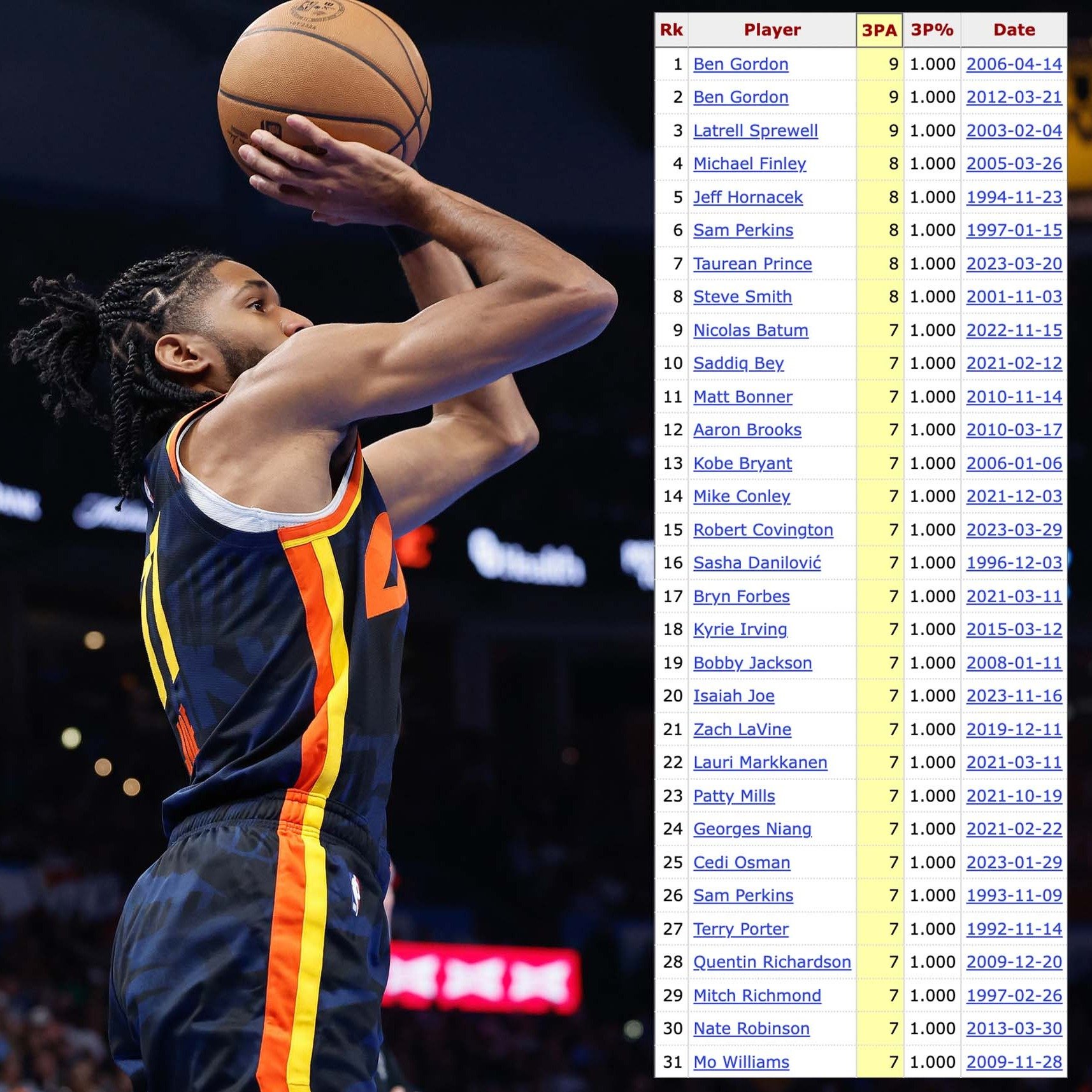 dün sabaha karşı golden state warriors karşısında kaçırmaksızın 7 üçlük isabetiyle 23 sayı ve 5 ribaund ile oynayan şutör guarddır. nba tarihinde bir maçta kaçırmaksızın 7+ üçlük isabeti sağlayan 29. oyuncu olmayı başardı.
