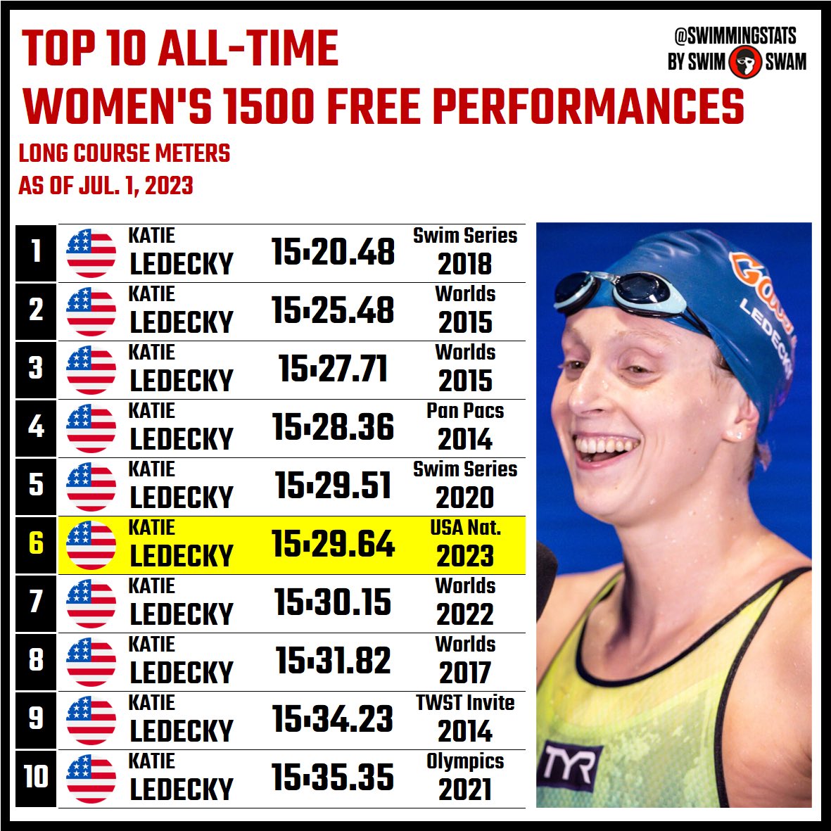 800 metre serbestte tarihin gelmiş geçmiş en iyi 30 derecesinin tamamı kendisine ait olan yüzücüdür.