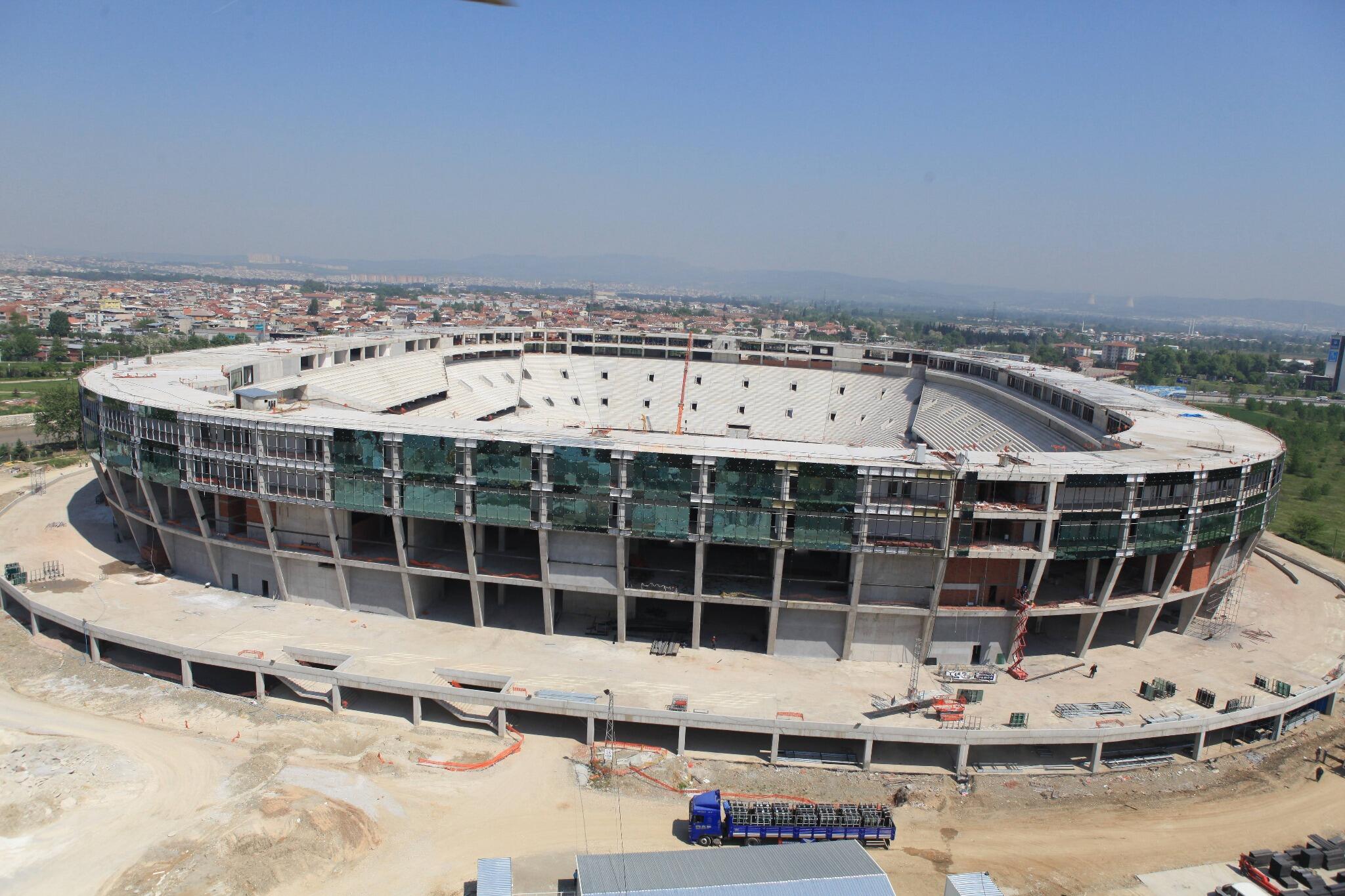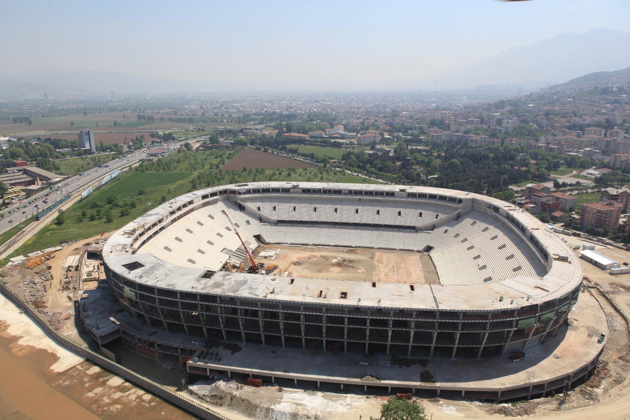 bursaspor'un şampiyonluğunun ardından yapılan 45 bin seyirci kapasiteli timsah arena'nın kaba inşaatının yüzde 98'i tamamlandı.
